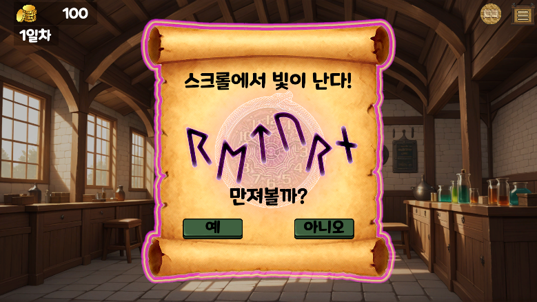블랙잭처럼 물약 재료를 무작위로 투입해 목표 용량을 초과하지 않도록 관리하는 전략적 요소가 핵심입니다. 성공적인 제조 후 획득한 보상에서 더 높은 가치의 물약 레시피를 구매하여 수익을 지속적으로 늘리고 지정된 기간동안 최대의 수익을 내는 것이 목표입니다.