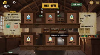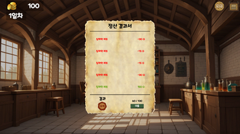 플레이어는 매일 증가하는 목표량을 달성하기 위해 물약을 만들어야 합니다.